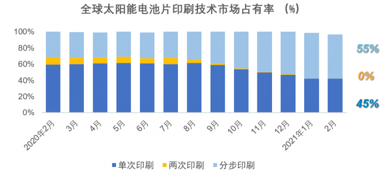 2021年1月,分步印刷技術(shù)的全球市場份額占比穩(wěn)定,保持市場主流地位