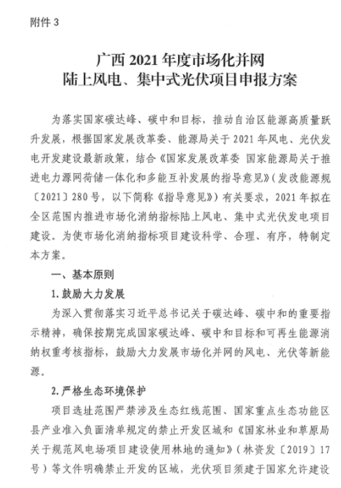 廣西壯族自治區(qū)發(fā)展和改革委員會(huì)關(guān)于申報(bào)2021年陸上風(fēng)電、光伏發(fā)電項(xiàng)目的通知