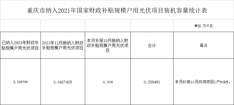 ( 包含重慶市申請納入2021年國家財(cái)政補(bǔ)貼規(guī)模戶用光伏項(xiàng)目裝機(jī)容量統(tǒng)計(jì)表和重慶市申請納入2021年國家財(cái)政補(bǔ)貼規(guī)模戶用光伏項(xiàng)目名單)