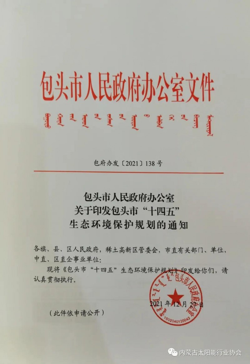 近日,包頭市人民政府下發(fā)《包頭市“十四五”生態(tài)環(huán)境保護(hù)規(guī)劃》。根據(jù)規(guī)劃內(nèi)容,“十四五”期間,包頭市著力構(gòu)建綠色低碳能源供給體系,推動新能源發(fā)展,重點推進(jìn)風(fēng)能、光伏、氫能產(chǎn)業(yè)發(fā)展,探索核能綜合利用,積極促進(jìn)儲能與新能源融合發(fā)展。以集中式和分布式并舉加大風(fēng)電、光伏等開發(fā)建設(shè)力度,延伸新能源鏈條,以風(fēng)能、光能、氫能、核能、儲能為龍頭,謀劃氫能發(fā)展路徑,開展氫能關(guān)鍵技術(shù)攻關(guān),拓展氫源渠道,推進(jìn)加氫基礎(chǔ)設(shè)施建設(shè),推廣氫能多領(lǐng)域利用,促進(jìn)氫能產(chǎn)業(yè)集群發(fā)展,打造新能源裝備制造和相關(guān)技術(shù)服務(wù)產(chǎn)業(yè)集群。以達(dá)茂旗創(chuàng)建全市可再生能源綜合應(yīng)用示范區(qū)為基礎(chǔ),全面推動“國家級清潔能源示范基地建設(shè)”,重點在達(dá)茂、固陽、白云以及土右、石拐的采煤沉陷區(qū)、露天礦坑、排土場、鹽堿地等,建設(shè)一批“源網(wǎng)荷儲一體化”、“風(fēng)光儲一體化”項目,到2025年通過優(yōu)化能源生產(chǎn)結(jié)果、加強能源領(lǐng)域新型產(chǎn)業(yè)布局,將包頭市打造成較為完善的現(xiàn)代能源經(jīng)濟(jì)產(chǎn)業(yè)基地,力爭實現(xiàn)風(fēng)、光等新能源裝機(jī)容量達(dá)到1300萬千瓦以上。
