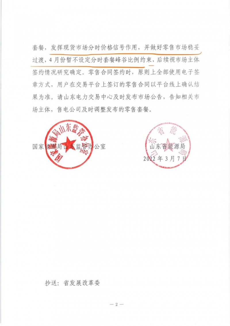 在此次交易公告發(fā)布之前,本月另一份文件的印發(fā)也相當(dāng)重要:3月7日,山東政府發(fā)布《關(guān)于做好山東省電力現(xiàn)貨市場(chǎng)零售交易有關(guān)事項(xiàng)的通知》,宣布從4月起,山東零售市場(chǎng)取消固定費(fèi)率套餐,引導(dǎo)市場(chǎng)主體簽訂基于山東現(xiàn)貨市場(chǎng)價(jià)格的分時(shí)價(jià)格類(lèi)套餐。(下圖)