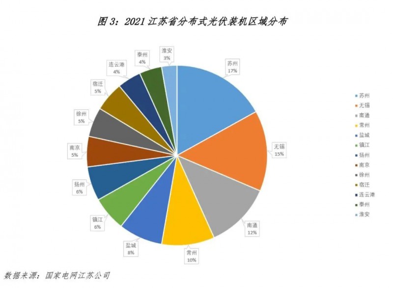 2021 年 9 月,國家能源局官網公布了全國整縣(市、區(qū))屋頂分布式光伏開發(fā)試點名單,在 676 個試點縣(市、區(qū))中江蘇共有 59 個,數量居全國第三。