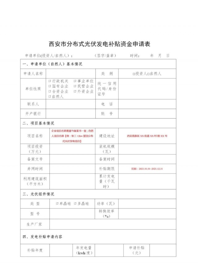 (一)西安市分布式光伏發(fā)電補(bǔ)貼資金申請(qǐng)表(見附件1);