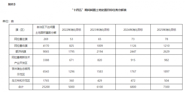 3.“十四五”期間閑置土地處置目標(biāo)任務(wù)分解表