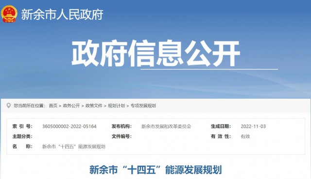 11月3日,江西省新余市發(fā)布“十四五”能源發(fā)展規(guī)劃。規(guī)劃指出,加大新能源開發(fā)利用力度,有序推進風電開發(fā),大力推進光伏開發(fā),因地制宜推動生物質和城鎮(zhèn)生活垃圾發(fā)電發(fā)展,2025年市內風電、光伏、生物質發(fā)電裝機容量分別達到30、150、5萬千瓦以上。
