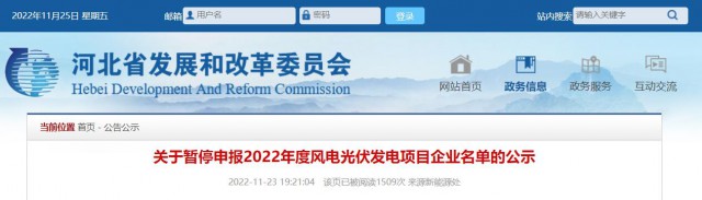 11月23日,河北省發(fā)布《關(guān)于暫停申報(bào)2022年度風(fēng)電光伏發(fā)電項(xiàng)目企業(yè)名單》的公示。通知顯示,為進(jìn)一步加強(qiáng)風(fēng)電光伏發(fā)電項(xiàng)目管理,按照對(duì)存有逾期未全容量并網(wǎng)項(xiàng)目企業(yè),原則上在全省范圍內(nèi)暫停該項(xiàng)目相關(guān)企業(yè)當(dāng)年新增項(xiàng)目申報(bào)的政策要求,現(xiàn)將暫停申報(bào)2022年度保障類、市場(chǎng)化企業(yè)名單予以公示。