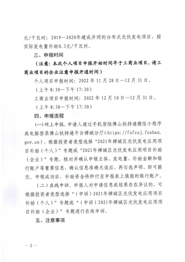 近日,佛山市禪城區(qū)發(fā)展和改革局印發(fā)《關于開展2021年度禪城區(qū)光伏發(fā)電應用項日補助資金申報工作的通知》。
