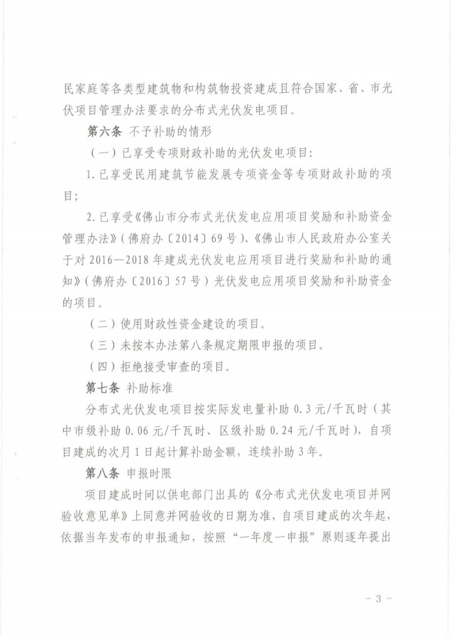 項目自建成并網的次月起連續(xù)補助36個月,其中:2017一2018年建成并網的分布式光伏發(fā)電項目,按實際發(fā)電量補助0.15元/千瓦時;2019-2020年建成并網的分布式光伏發(fā)電項目,按實際發(fā)電量補助0.3元/千瓦時。