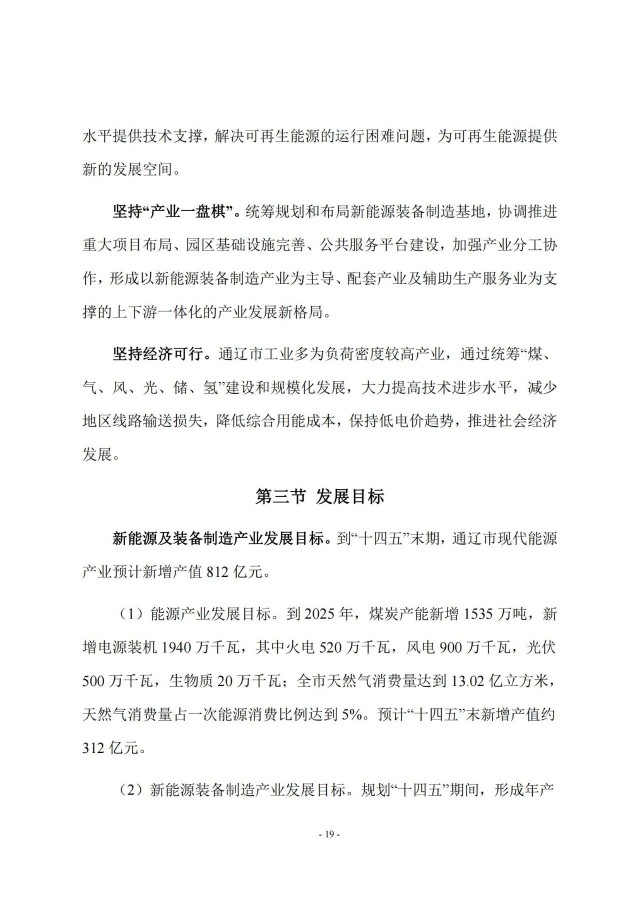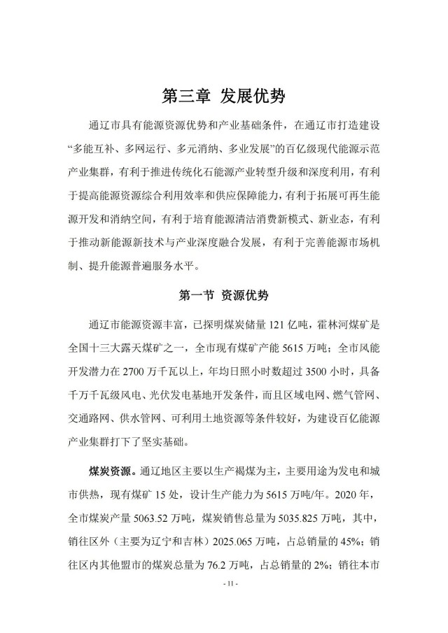 近日,通遼市能源局印發(fā)《通遼市百億級(jí)現(xiàn)代能源示范產(chǎn)業(yè)集群發(fā)展規(guī)劃》,規(guī)劃到2025年,全市煤炭產(chǎn)能新增1535萬(wàn)噸,新增電源裝機(jī)1940萬(wàn)千瓦,其中火電520萬(wàn)千瓦,風(fēng)電900萬(wàn)千瓦,光伏發(fā)電500萬(wàn)千瓦,生物質(zhì)發(fā)電20萬(wàn)千瓦。