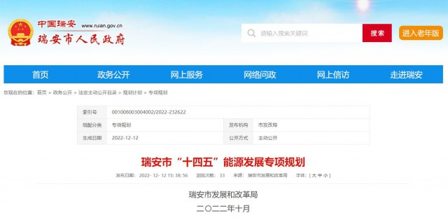 12月12日,浙江省瑞安市“十四五”能源發(fā)展專項(xiàng)規(guī)劃印發(fā)。