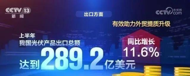 出口方面,上半年,我國光伏產(chǎn)品出口總額達到289.2億美元,同比增長11.6%,有效助力外貿提質升級。