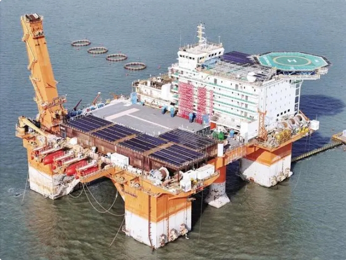 實證基地位于煙臺高新區(qū)四十里灣海域,由一座半潛式海上生活平臺改造而成,可克服風(fēng)、浪、流的循環(huán)載荷和高鹽霧等復(fù)雜海上工況,對水位、結(jié)構(gòu)受力、光照強度、發(fā)電量等數(shù)十項數(shù)據(jù)和光伏平臺項目的發(fā)電效率、新材料防腐性、抗風(fēng)浪能力等關(guān)鍵因素進行綜合論證。