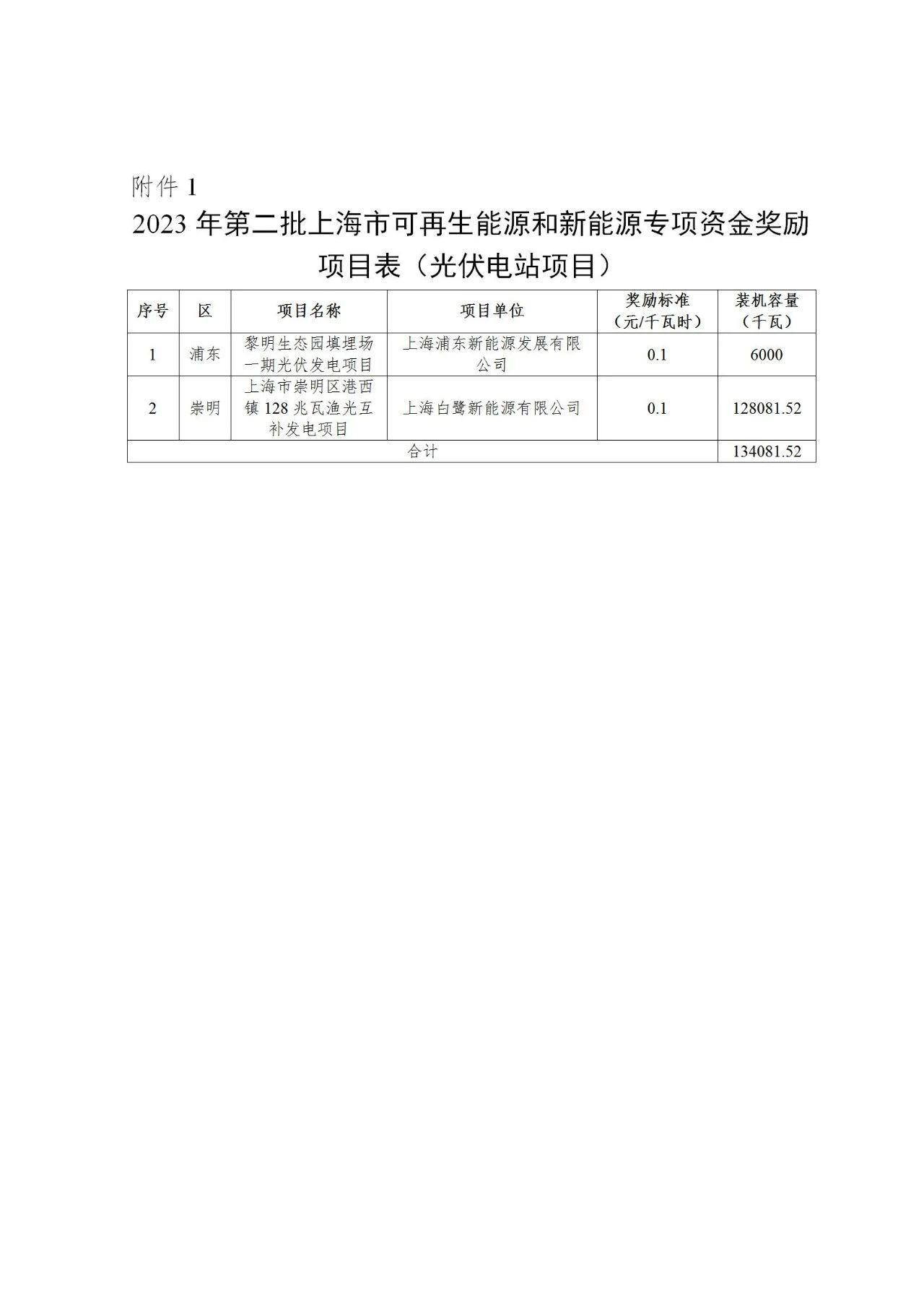文件指出,根據(jù)《上海市可再生能源和新能源發(fā)展專項(xiàng)資金扶持辦法》(滬發(fā)改規(guī)范〔2022〕14號,以下稱“14號文”)、《關(guān)于開展上海市可再生能源和新能源發(fā)展專項(xiàng)資金扶持項(xiàng)目線上申報(bào)試點(diǎn)工作的通知》(滬發(fā)改能源〔2023〕174號),市發(fā)展改革委會同市財(cái)政局組織開展了2023年第二批可再生能源和新能源發(fā)展專項(xiàng)資金獎勵目錄的核實(shí)確認(rèn)工作。