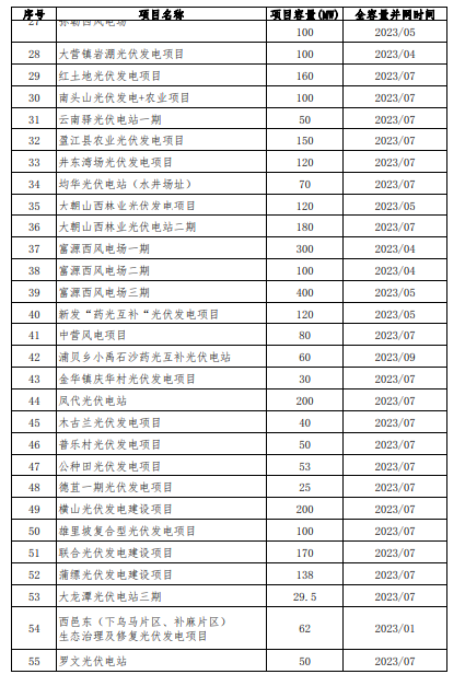 根據(jù)《云南省發(fā)展和改革委員會 云南省能源局關(guān)于云南省光伏發(fā)電上網(wǎng)電價政策有關(guān)事項的通知》(云發(fā)改價格〔2023〕319號)以及《云南省發(fā)展和改革委員會 云南省能源局關(guān)于進一步完善風電上網(wǎng)電價政策有關(guān)事項的通知》(云發(fā)改價格〔2023〕665號)文件精神,新能源全容量并網(wǎng)時間的認定由省能源局會同云南電網(wǎng)公司負責。為加強社會監(jiān)督,廣泛征求意見,現(xiàn)將經(jīng)認定后的項目清單予以公示,有關(guān)情況如下:
