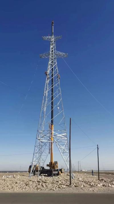 為保證施工節(jié)點順利推進,酒泉新能源公司對項目提前進行謀劃、部署,科學制訂施工方案,有序組織圖紙會審、現(xiàn)場勘查、專題討論、方案研討等各項準備工作,鐵塔組立前做好施工人員的安全技術交底工作,使每個施工人員都能掌握工藝流程及操作要點,在確認現(xiàn)場施工相關資料、安全措施落實情況及施工工器具符合要求后,方可允許進行組立工作,整個施工過程中,該項目各參建方全程旁站,嚴格落實安全和技術交底,克服種種不利因素,嚴把施工工藝標準、質(zhì)量要求,最終順利完成了第一座鐵塔的吊裝組立。