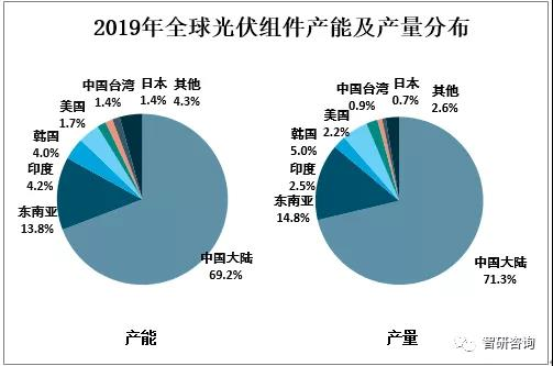 中國為全球最大的光伏組件生產國,從2019年全球各地區(qū)光伏組件產能來看,中國占比69.2%,東南亞占比13.8%,印度占比4.2%;從2019年全球各地區(qū)光伏組件產量來看,中國占比71.3%,東南亞占比14.8%,印度占比2.5%。