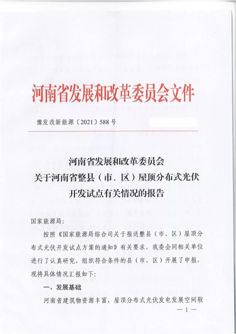 近日,河南發(fā)改委下發(fā)關(guān)于《關(guān)于河南省整縣(市、區(qū))屋頂分布式光伏開(kāi)發(fā)試點(diǎn)有關(guān)情況的報(bào)告》,文件顯示,河南省共有66個(gè)省(市、區(qū))基本符合申報(bào)要求,擬建設(shè)規(guī)模約1500萬(wàn)千瓦。文件指出,考慮到整縣(市、區(qū))開(kāi)發(fā)涉及建筑物類型較多、建筑質(zhì)量參差不齊、產(chǎn)權(quán)歸屬較為復(fù)雜等特點(diǎn),為保障試點(diǎn)建設(shè)順利開(kāi)展,試點(diǎn)申報(bào)縣(市、區(qū))主要采用“1+1+X”建設(shè)模式整體推進(jìn)。