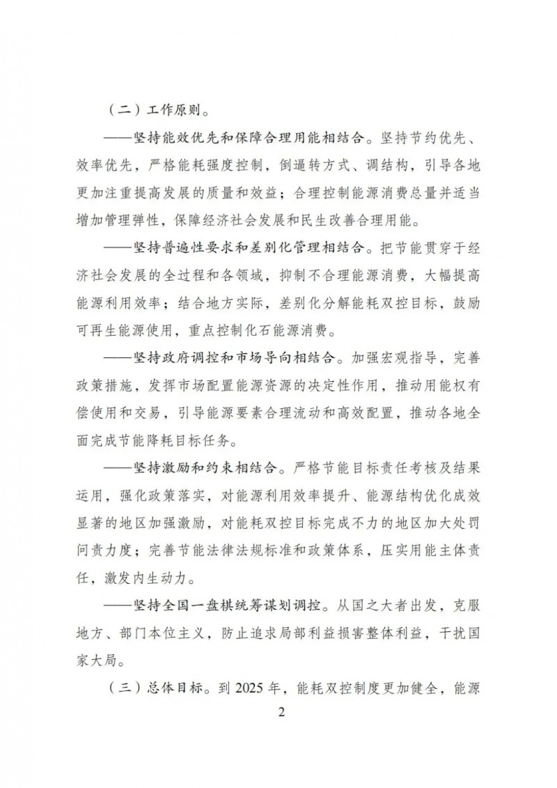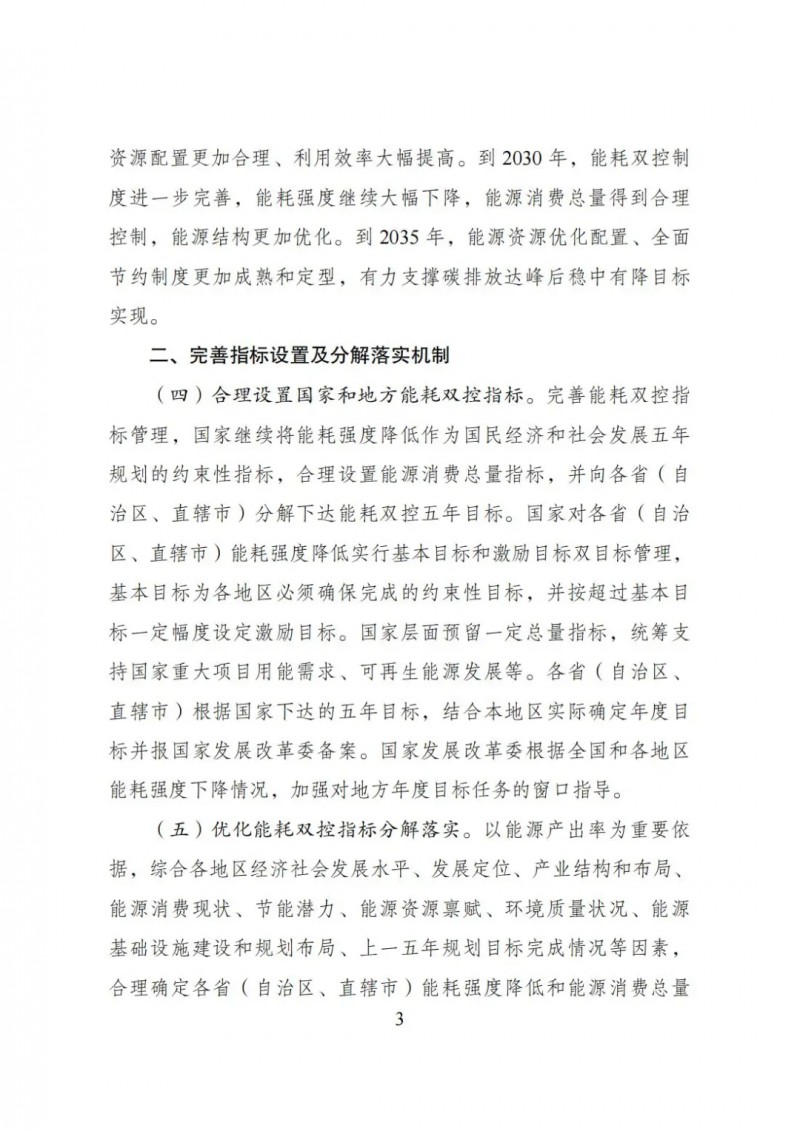 到2025年,能耗雙控制度更加健全,能源資源配置更加合理、利用效率大幅提高。到2030年,能耗雙控制度進一步完善,能耗強度繼續(xù)大幅下降,能源消費總量得到合理控制,能源結(jié)構(gòu)更加優(yōu)化。到2035年,能源資源優(yōu)化配置、全面節(jié)約制度更加成熟和定型,有力支撐碳排放達峰后穩(wěn)中有降目標(biāo)實現(xiàn)。