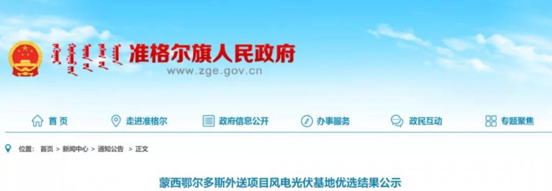 9月30日,準(zhǔn)格爾旗人民政府公示了項(xiàng)目的競(jìng)爭(zhēng)性配置結(jié)果。詳見原文:
