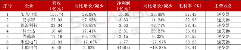 逆變器企業(yè)來看,7家逆變器企業(yè)Q1~Q3均實現(xiàn)盈利,2家企業(yè)凈利潤同比去年同期下滑,其中禾望電氣毛利率達38.23%、固德威34.55%、科士達33.81%。
