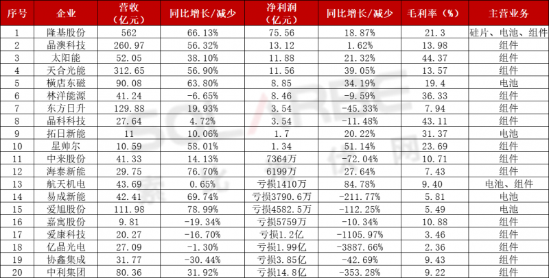 光伏企業(yè)前三季度毛利率排行榜
