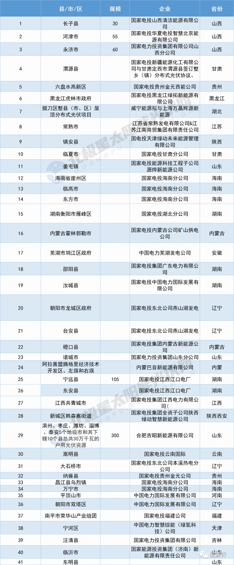 注:上表根據(jù)根據(jù)公開信息統(tǒng)計,僅供參考反觀國家電投,截至目前在山西、山東、湖南、遼寧等21個省下屬縣市區(qū)簽訂了整縣開發(fā)協(xié)議。以下為項目詳情: