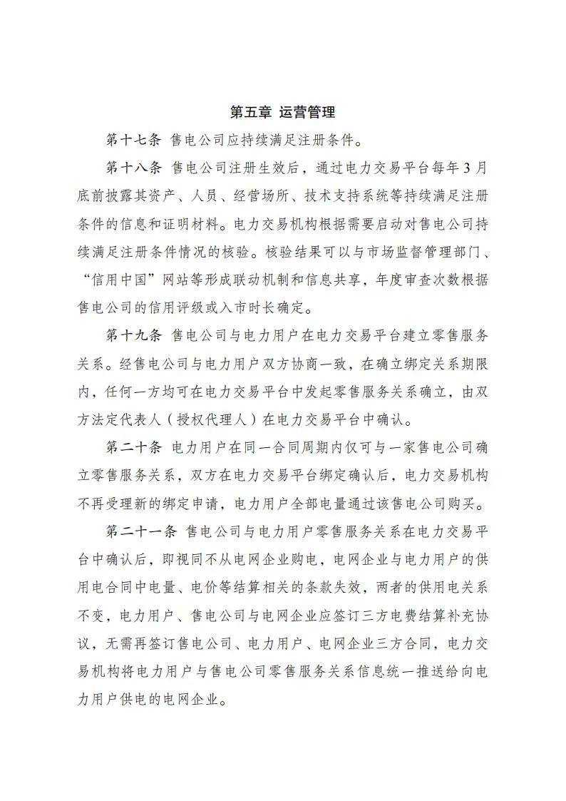為貫徹落實《中共中央、國務院關于進一步深化電力體制改革的若干意見》(中發(fā)〔2015〕9號)和電力體制改革配套文件精神,國家發(fā)展改革委、國家能源局制定了《售電公司管理辦法》,現(xiàn)印發(fā)給你們,請按照執(zhí)行。《國家發(fā)展改革委、國家能源局關于印發(fā)<售電公司準入與退出管理辦法>和<有序放開配電網(wǎng)業(yè)務管理辦法>的通知》(發(fā)改經(jīng)體〔2016〕2120號)中《售電公司準入與退出管理辦法》廢止。