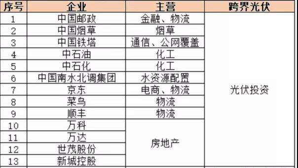 除了傳統(tǒng)的電力能源國(guó)有企業(yè)大幅提高了分布式光的裝機(jī)目標(biāo)之外,雙碳目標(biāo)也激發(fā)了更多大企業(yè)對(duì)于清潔電力的認(rèn)知與追求。日前光伏們?cè)凇吨袊?guó)郵政啟動(dòng)光伏合作商入圍招標(biāo),全民跨界投資光伏愈演愈烈》一文中,梳理了部分跨界投資建設(shè)分布式光伏電站的企業(yè),其中不乏多家中字頭的國(guó)有企業(yè)以及各領(lǐng)域的龍頭企業(yè)。