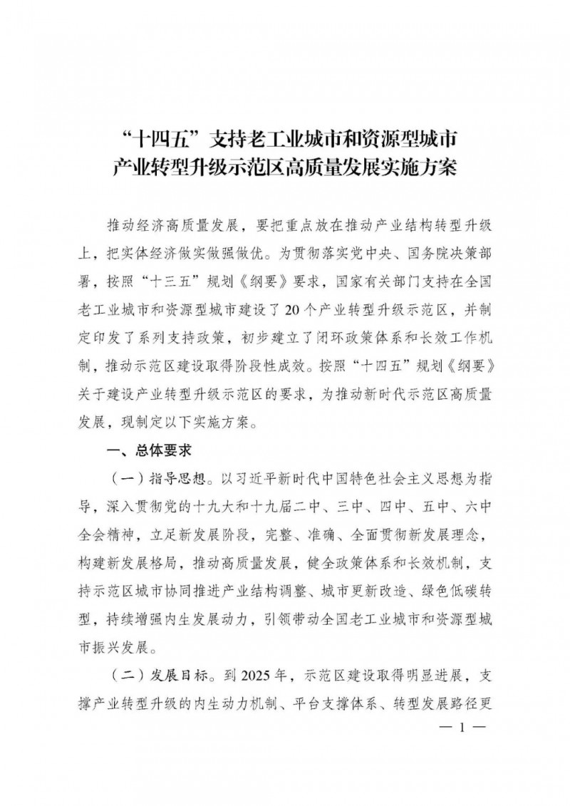 國家發(fā)展改革委等部門關(guān)于印發(fā)《“十四五”支持老工業(yè)城市和資源型城市產(chǎn)業(yè)轉(zhuǎn)型升級示范區(qū)高質(zhì)量發(fā)展實施方案》的通知