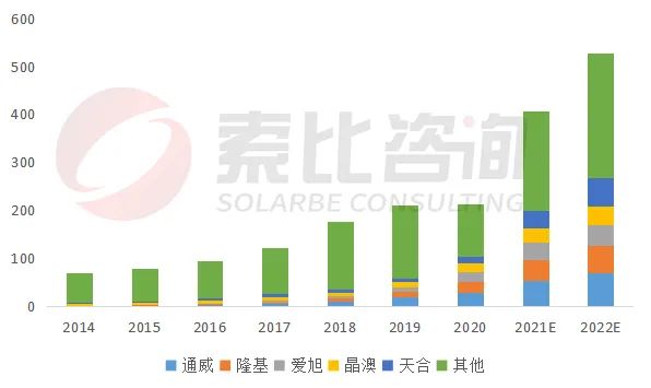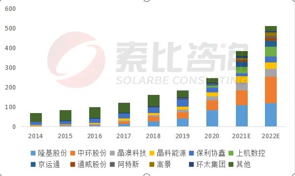 2021年底全球硅片產能366GW,索比咨詢預計2022年底硅片產能將達515GW,硅片產能供過于求。伴隨高景太陽能、雙良節(jié)能等新玩家重資入場,新老玩家競爭將加劇中小企業(yè)淘汰,雙寡頭局面或更改。