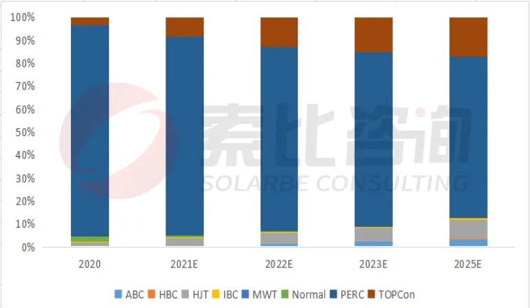 圖:電池片技術市占率變化趨勢