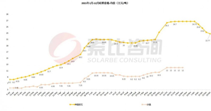 索比咨詢預計,2022年硅料價格保持高位運行。受新產能投放節(jié)奏影響,預計Q2前硅料價格保持高位,年初價格在200元/KG,年底將達100元/KG。