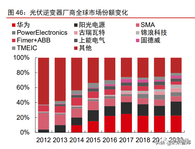 受益于光伏建筑市場擴(kuò)大+安全高效要求提升,組件級控制有望成為下一代逆變器主 流方向。受戶用等屋頂分布式裝機(jī)占比提升驅(qū)動,以微型逆變器為代表的組件級電力電子 變換產(chǎn)品接受度不斷提高,且相關(guān)強(qiáng)制措施有望進(jìn)一步推進(jìn)微型逆變器市場增長。美國國 家防火協(xié)會 2017 年在 NEC 規(guī)范中強(qiáng)制性要求光伏建筑發(fā)電系統(tǒng)達(dá)到組件級關(guān)斷的要求, 推動美國分布式市場 MLPE 產(chǎn)品滲透率達(dá) 70%以上,另有德國、澳大利亞等多個國家逐 步立法推進(jìn)光伏建筑的組件級關(guān)斷要求,而國內(nèi)“整縣推進(jìn)”、BIPV 等光伏項目快速落地 也提高了光伏系統(tǒng)的安全要求的必要性,相關(guān)安全標(biāo)準(zhǔn)呼之欲出。隨著政府、行業(yè)組織及 戶主對安全性重視程度加深,行業(yè)正在由組串式逆變器向組件級別控制的逆變器轉(zhuǎn)變,組 件級控制有望成為下一代逆變器的主流方向之一。