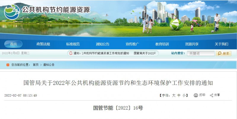 原標題:國管局關(guān)于2022年公共機構(gòu)能源資源節(jié)約和生態(tài)環(huán)境保護工作安排的通知