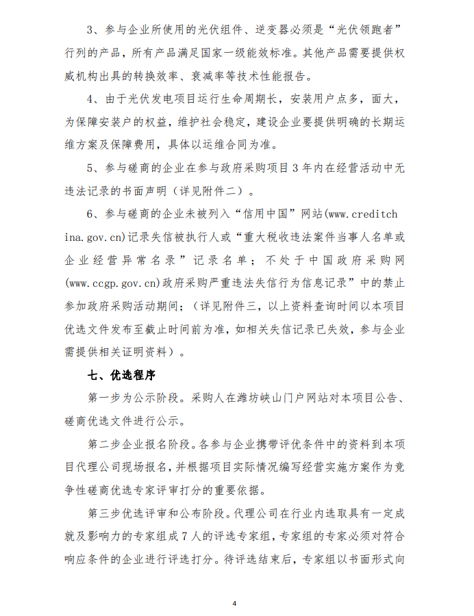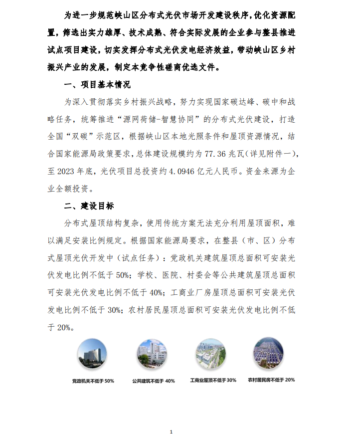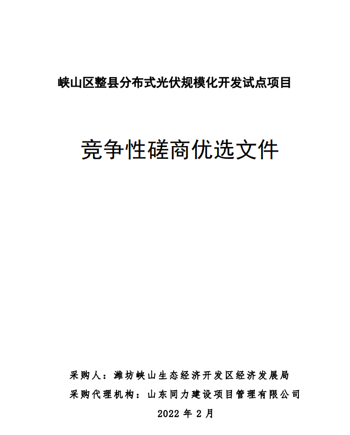 峽山區(qū)整縣分布式光伏規(guī)模化開(kāi)發(fā)試點(diǎn)項(xiàng)目競(jìng)爭(zhēng)性磋商二次公告