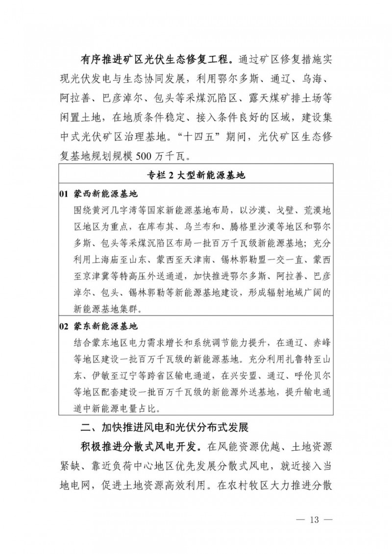 3月3日,內(nèi)蒙古自治區(qū)能源局網(wǎng)站公開(kāi)發(fā)布了“內(nèi)蒙古自治區(qū)能源局關(guān)于印發(fā)《內(nèi)蒙古自治區(qū)“十四五”可再生能源發(fā)展規(guī)劃》的通知(內(nèi)能新能字〔2022〕103號(hào))”,根據(jù)規(guī)劃,“十四五”時(shí)期,我區(qū)可再生能源主要發(fā)展目標(biāo)如下: