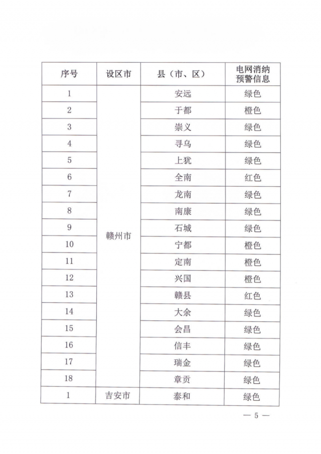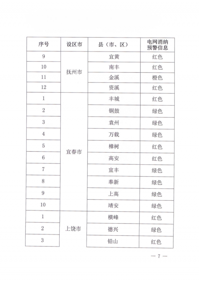 文件指出,由于新能源可開(kāi)發(fā)容量呈現(xiàn)飽和狀態(tài),故給出部分市縣電網(wǎng)新能源可開(kāi)放容量表。江西的94個(gè)縣市區(qū)中,已經(jīng)有27個(gè)電網(wǎng)消納預(yù)警信息為紅色,12個(gè)為橙色。