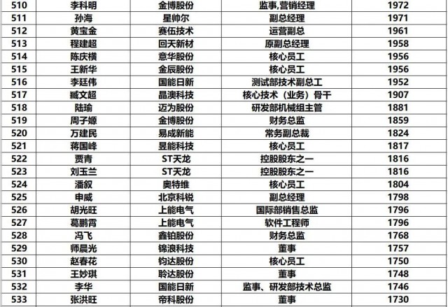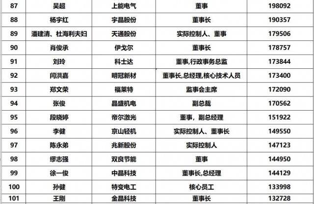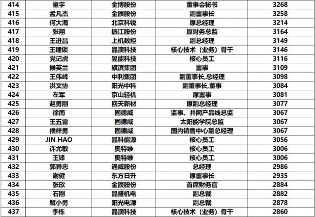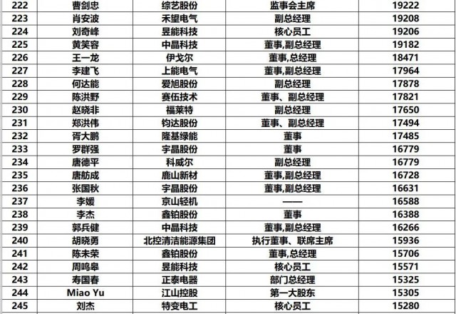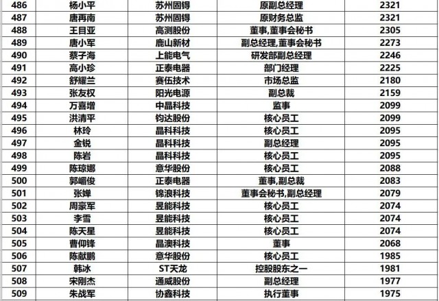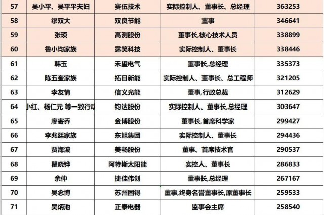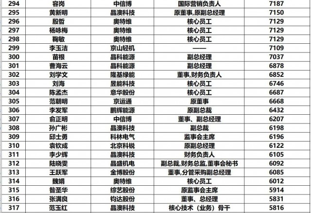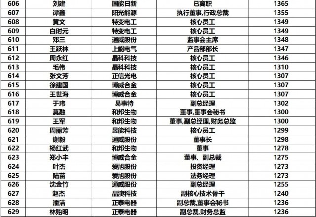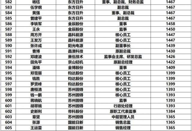 黑鷹團(tuán)隊制作此次榜單的方法:第一,此次統(tǒng)計的財富榜,是以光伏上市公司實時披露的前十大股東和高管持股數(shù)據(jù)為基礎(chǔ),乘以2022年7月4日企業(yè)收盤價計算得出,并不包含相應(yīng)上市企業(yè)股票價值(通常這也是相關(guān)人的核心財富)以外的財富。第二,《2022年中國光伏富豪榜TOP1000》涵蓋光伏企業(yè)實際控制人、現(xiàn)任公司高管/原高管、集團(tuán)公司高管等核心光伏從業(yè)人員,其他諸如財務(wù)投資者、或者二級市場投資者未計算在內(nèi)。第三,黑鷹團(tuán)隊實際統(tǒng)計到的人數(shù)近1500人,最終擇取了前1000人。