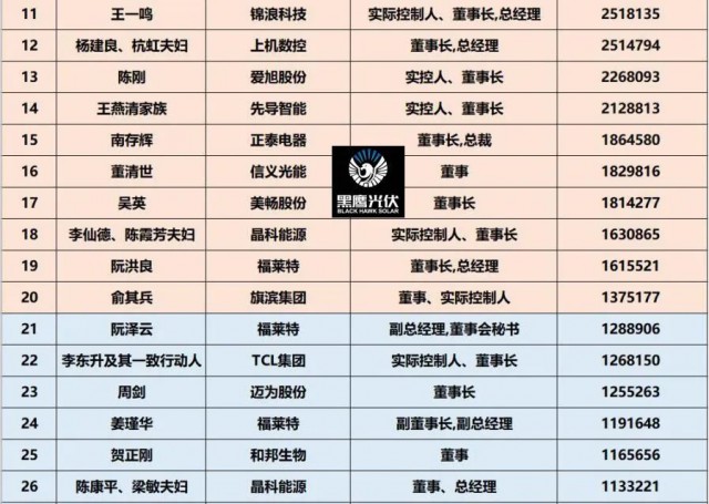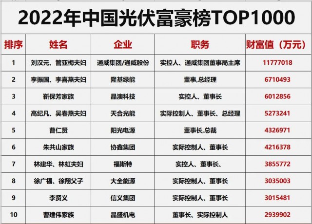 黑鷹光伏團(tuán)隊推出《2022年中國光伏富豪榜TOP1000》榜單。