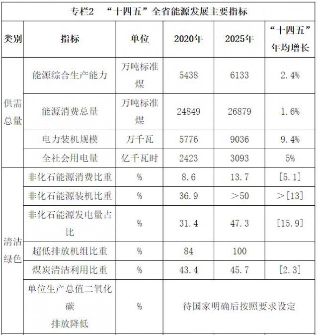 按照構建清潔低碳、安全高效的現(xiàn)代能源體系和著力建設清潔能源強省的目標要求,到“十四五”末全省能源發(fā)展主要目標是: