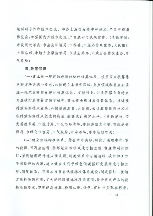 近日,上海市人民政府辦公廳印發(fā)了《上海市碳達(dá)峰實(shí)施方案》?!斗桨浮访鞔_主要目標(biāo):到2025年,單位生產(chǎn)總值二氧化碳排放確保完成國(guó)家下達(dá)指標(biāo)。到2030年單位生產(chǎn)總值二氧化碳排放比2005年下降70%,確保2030年前實(shí)現(xiàn)碳達(dá)峰。并計(jì)劃組織實(shí)施“碳達(dá)峰十大行動(dòng)”,包括能源綠色低碳轉(zhuǎn)型行動(dòng)、節(jié)能降碳增效行動(dòng)、工業(yè)/城鄉(xiāng)建設(shè)/交通領(lǐng)域綠色低碳行動(dòng)、循環(huán)經(jīng)濟(jì)助力降碳行動(dòng)、綠色低碳科技創(chuàng)新行動(dòng)、碳匯能力鞏固提升行動(dòng)、綠色低碳全民行動(dòng)、綠色低碳區(qū)域行動(dòng)。