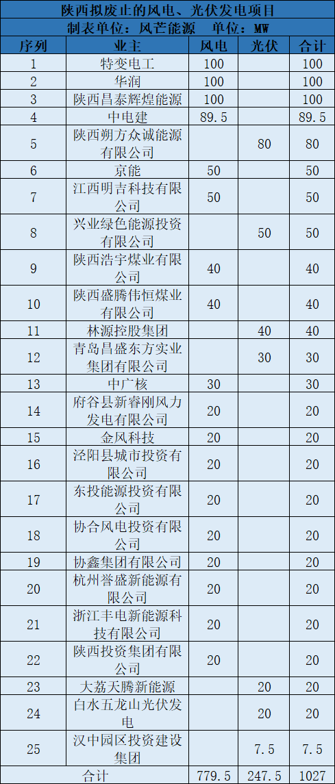 根據(jù)整理,從業(yè)主角度看,目前特變電工、華潤、陜西昌泰輝煌能源分別被廢止了100MW風(fēng)電項目。