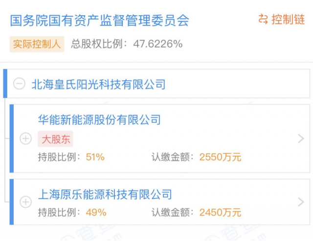 近日,另一家入股制造企業(yè)的央企也浮出水面,公開消息稱,8月28日上午,中國華能集團有限公司廣西分公司黨委書記、執(zhí)行董事李寶山在合浦縣委副書記、縣長白銀冰以及皇氏陽光科技有限公司董事長魯嚴飛等熱情陪同下,共同參加了北?;适详柟饪萍加邢薰竞掀挚h一期3GW高效光伏組件制造項目開工儀式。企查查數(shù)據(jù)顯示,華能新能源已經(jīng)成為北?;适涎雵萍加邢薰镜目毓晒蓶|,股權(quán)占比51%。