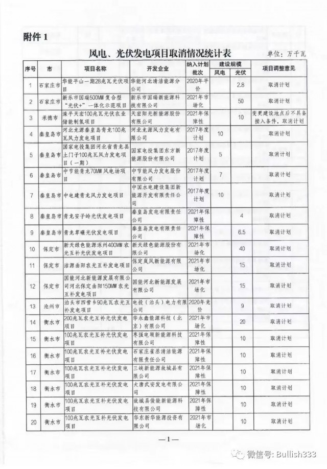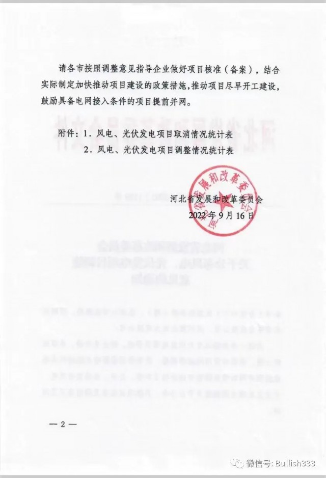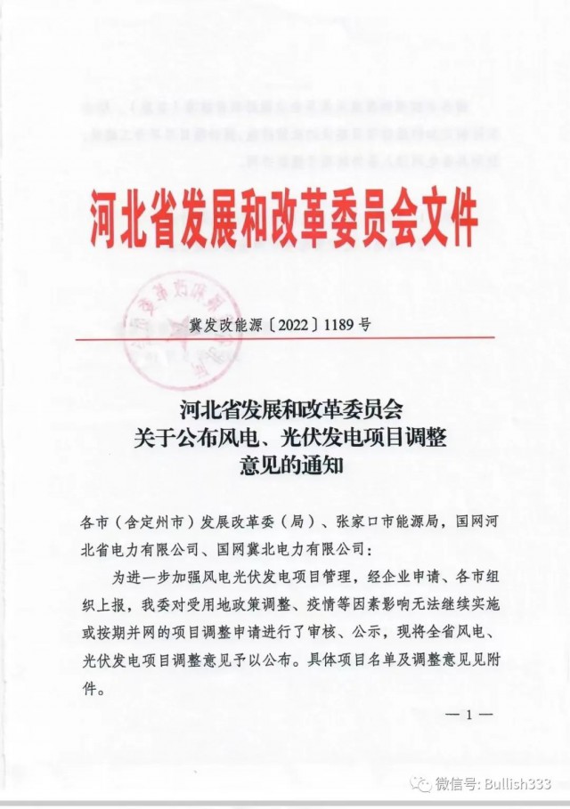 9月16日,河北發(fā)改委正式印發(fā)《關(guān)于公布風(fēng)電、光伏發(fā)電項目調(diào)整意見的通知》,對受用地政策調(diào)整、疫情等因素影響無法繼續(xù)實施或按期并網(wǎng)的項目進(jìn)行了調(diào)整。