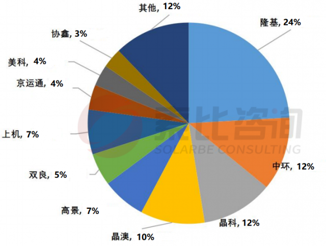 圖:2022年9月中國光伏硅片生產(chǎn)企業(yè)產(chǎn)出份額
