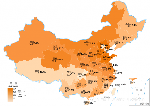 截至9月底累計(jì)光伏發(fā)電量(億千瓦時(shí))及占本地區(qū)總發(fā)電量比重