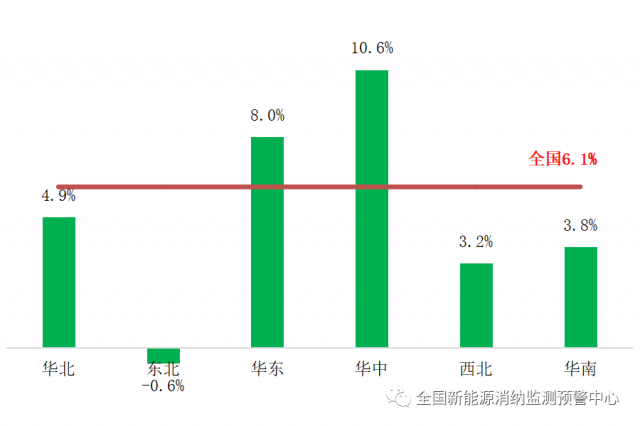 三季度各區(qū)域全社會(huì)用電量同比增速情況