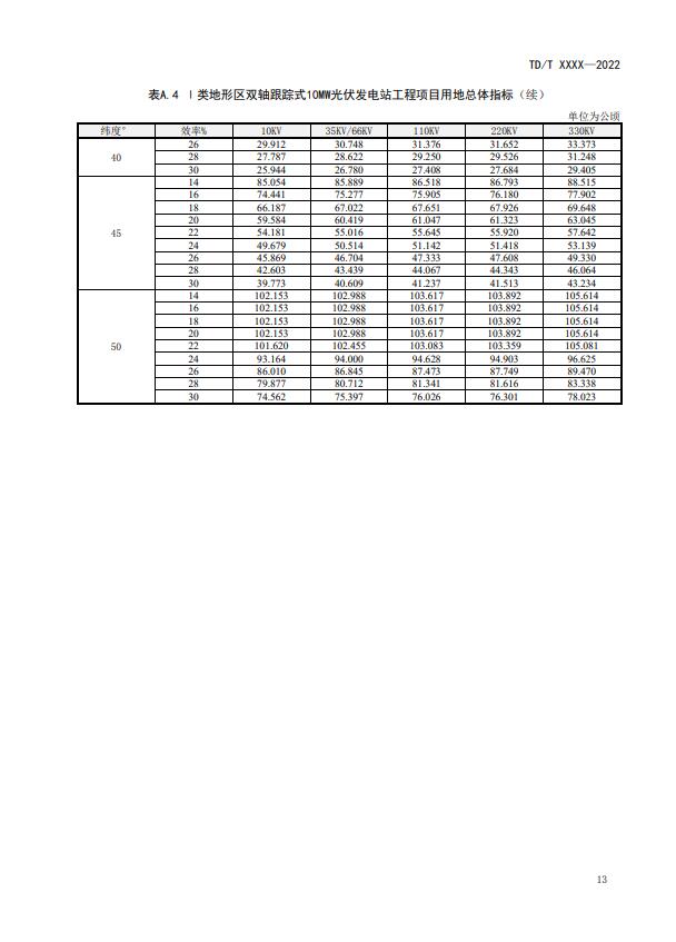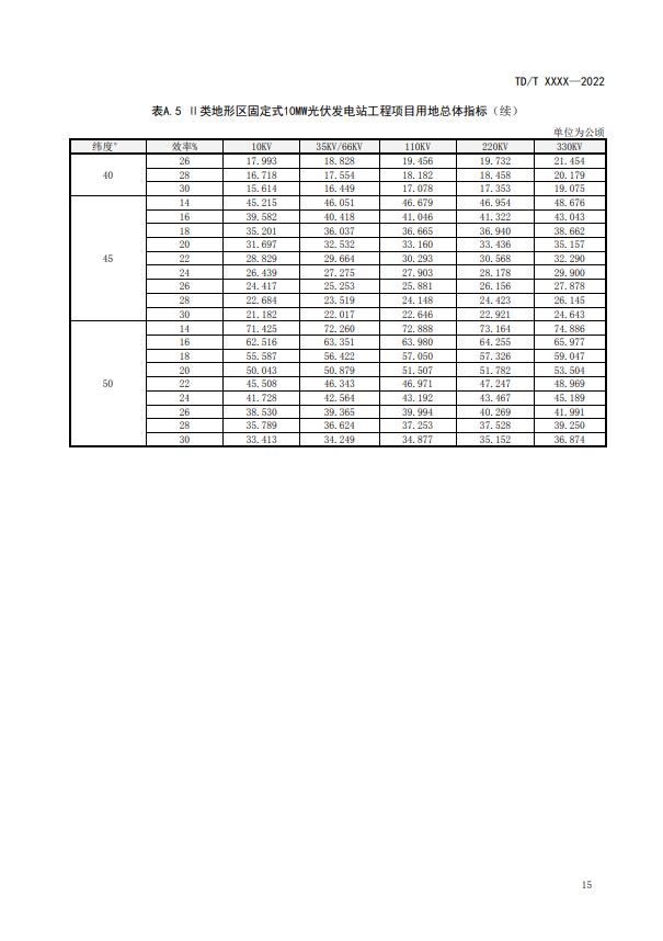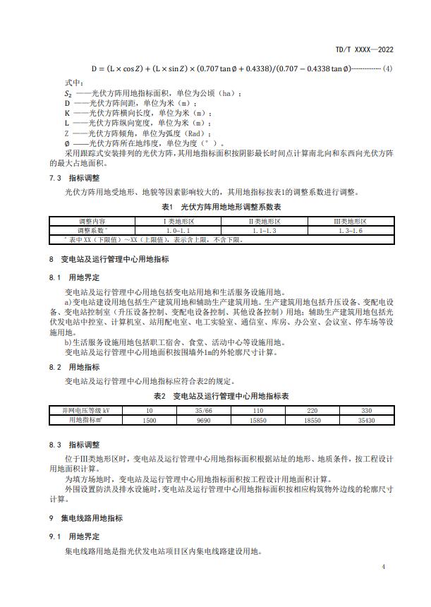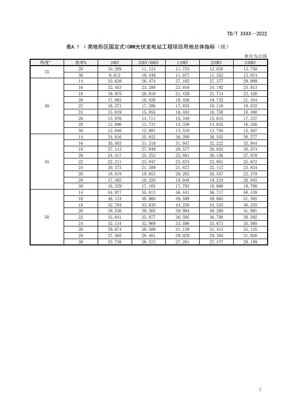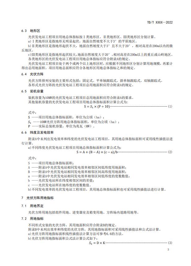 12月5日,自然資源部發(fā)布“《光伏發(fā)電站工程項目用地控制指標(biāo)》等3項行業(yè)標(biāo)準(zhǔn)報批稿公示”,文件指出:光伏發(fā)電站工程項目用地總體指標(biāo)按Ⅰ類地形區(qū)、Ⅱ類地形區(qū)、Ⅲ類地形區(qū)分別計算。光伏發(fā)電站工程項目處于兩個或兩個以上地形區(qū)時,應(yīng)根據(jù)不同地形區(qū)分別計算用地規(guī)模,再累計得出總用地面積。項目用地總面積應(yīng)符合各地形區(qū)用地總體指標(biāo)之和的規(guī)定。