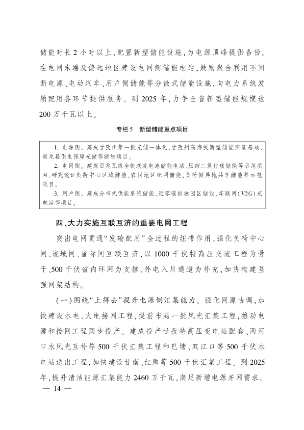 發(fā)揮新型儲能靈活調(diào)節(jié)作用。規(guī)劃建設(shè)“新能源+儲能” 設(shè)施,對新增風(fēng)電、光伏發(fā)電項目原則上按不低于裝機(jī)容量10% 、儲能時長2小時以上,配置新型儲能設(shè)施,為電源頂峰提供備份。在電網(wǎng)末端及偏遠(yuǎn)地區(qū)建設(shè)電網(wǎng)側(cè)儲能電站,鼓勵聚合利用不間斷電源、電動汽車、用戶側(cè)儲能等分散式儲能設(shè)施,向電力系統(tǒng)發(fā)輸配用各環(huán)節(jié)提供服務(wù)。到2025年,力爭全省新型儲能規(guī)模達(dá)200萬千瓦以上。