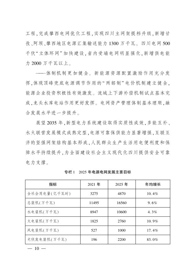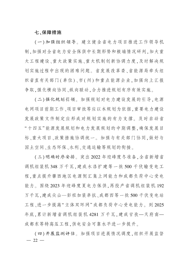 12月6日,四川省人民政府印發(fā)《四川省電源電網(wǎng)發(fā)展規(guī)劃(2022—2025年)》,文件明確主要目標(biāo):到2025年,基本建成具備較強(qiáng)抗風(fēng)險能力的電力系統(tǒng)。電力裝機(jī)規(guī)模達(dá)到16560萬千瓦,水電、火電、風(fēng)電、光伏發(fā)電占比從77.8% 、15.9% 、4.6% 、1.7%調(diào)整為64.1% 、16.6% 、6.0% 、13.3% ,電源多能互補、水火互濟(jì)能力顯著增強(qiáng)。省調(diào)機(jī)組季以上調(diào)節(jié)能力水庫電站達(dá)40座、裝機(jī)2392萬千瓦,新建成氣電項目裝機(jī)容量850萬千瓦以上,開工建設(shè)抽水蓄能項目12個,“ 三州一市”,光伏基地和涼山州風(fēng)電基地加快建設(shè)。